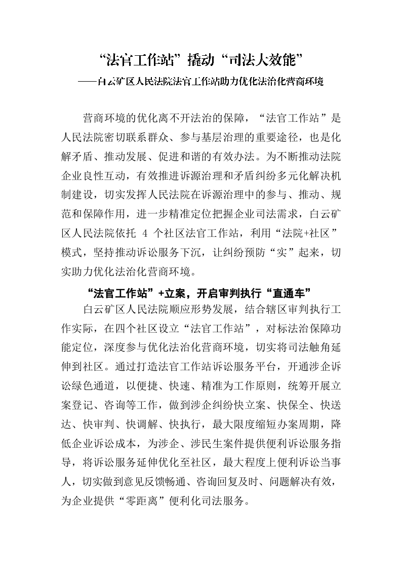 / (03.31信息)“法官工作站”撬动“司法大效能”——白云矿区人民法院法官工作站助力优化法治化营商环境