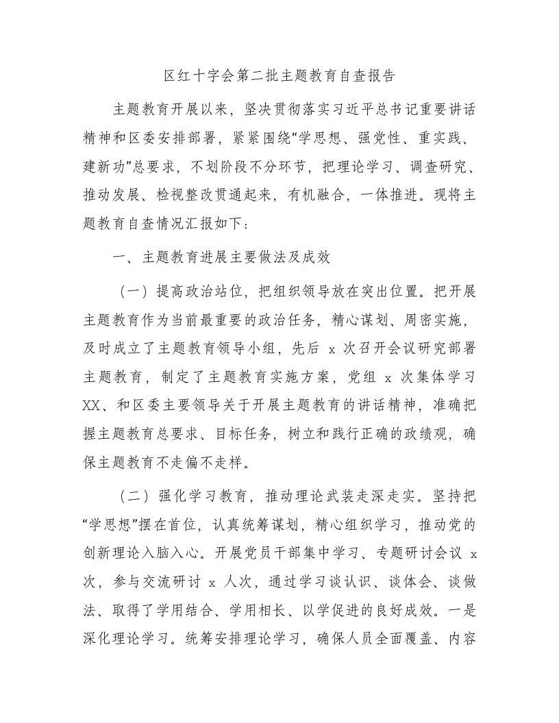 / 区红十字会第二批主题教育自查报告(2200字总结)