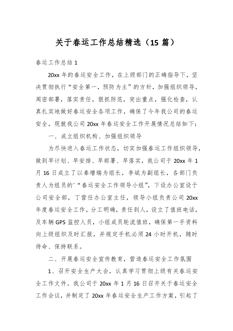 / (15篇)关于春运工作总结精选