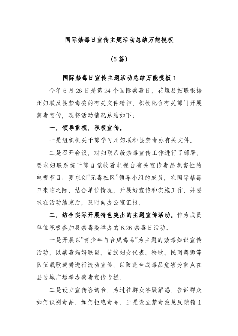 / (5篇)国际禁毒日宣传主题活动总结万能模板