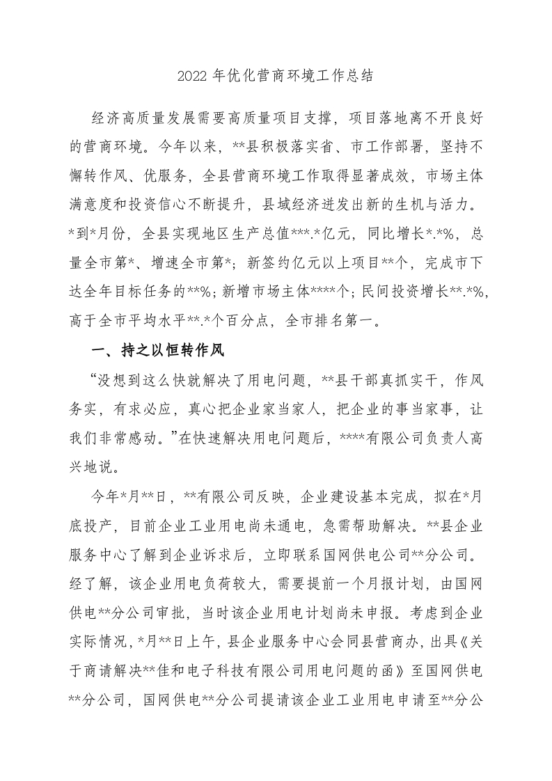 2022年优化营商环境工作总结