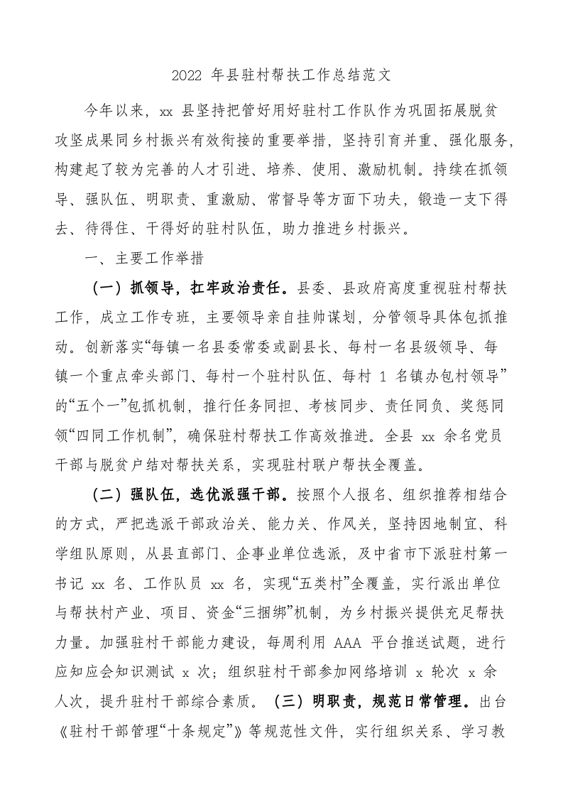 / 2022年全县驻村帮扶工作总结范文