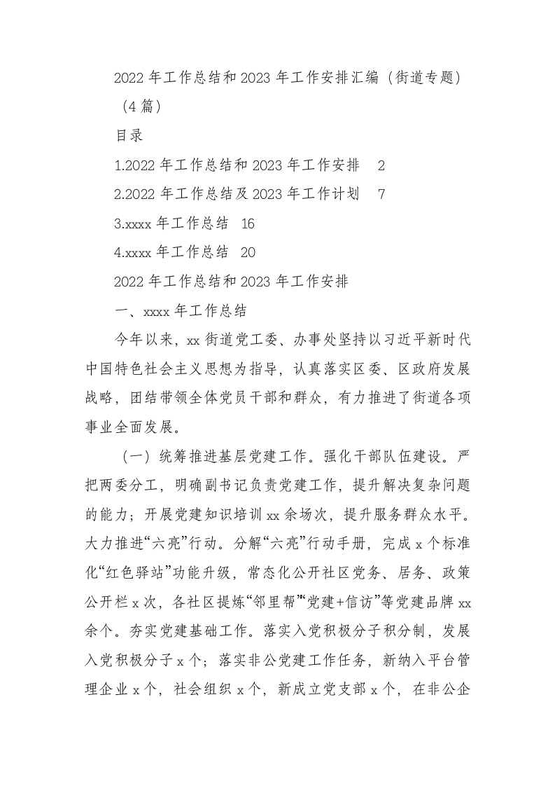 / 2022年工作总结和2023年工作安排汇编(街道专题)(4篇)