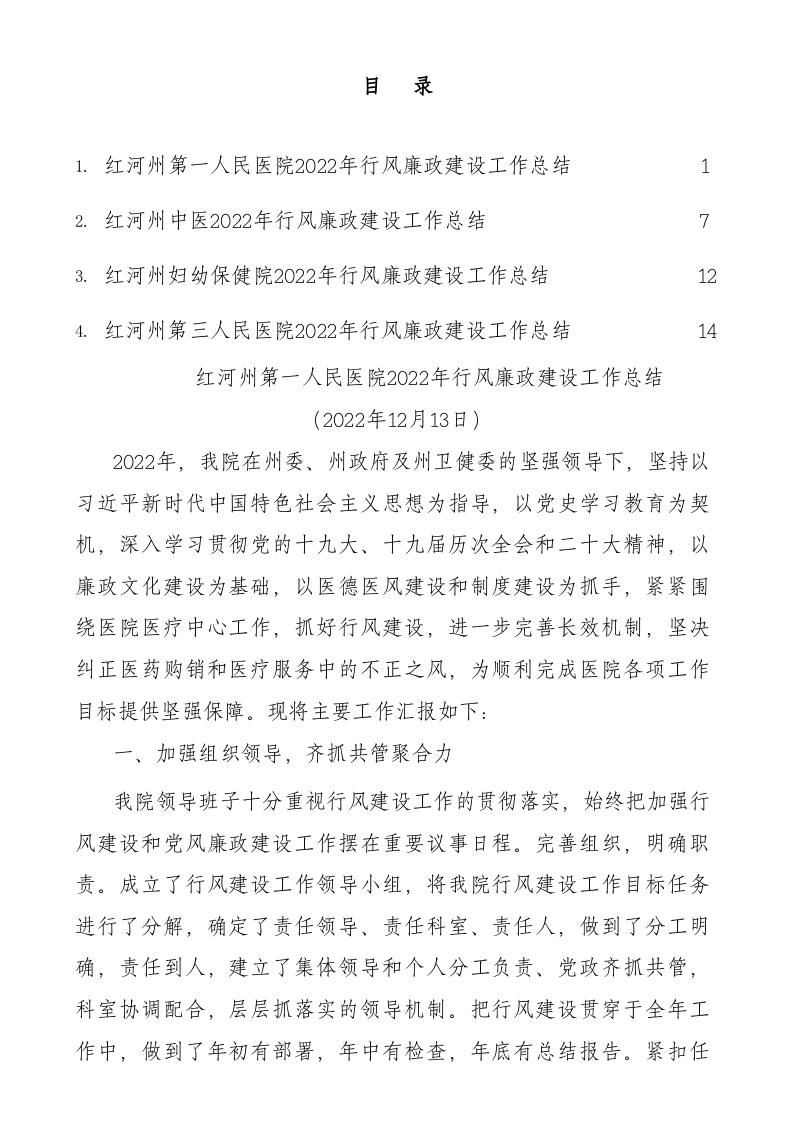 / 2022年红河州各医院行风廉政建设工作总结汇编(党风廉政建设)(4篇)