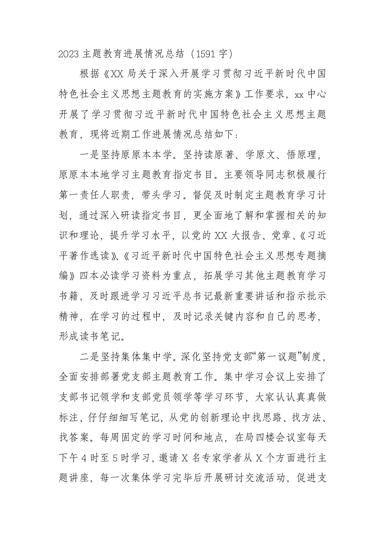 2023主题教育进展情况总结