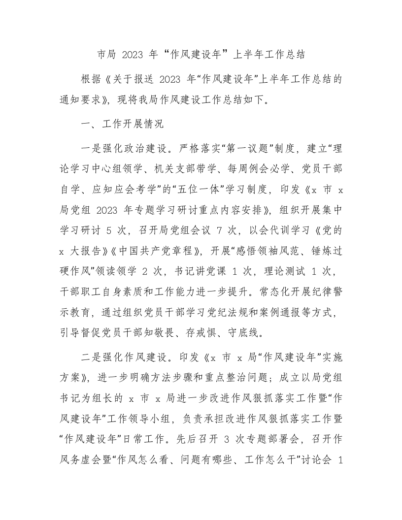 2023年“作风建设年”上半年工作总结