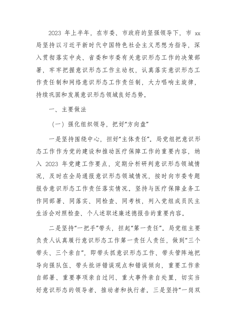 2023年上半年意识形态工作总结2300字