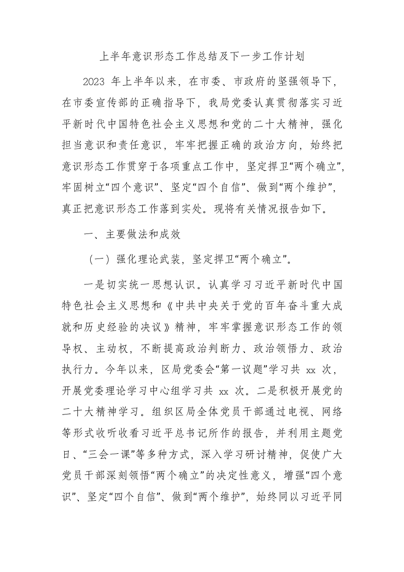 / 2023年上半年意识形态工作总结3900字
