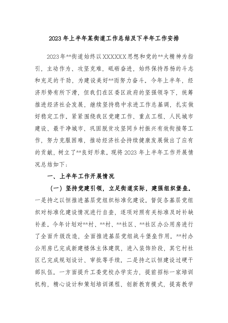 / 2023年上半年街道工作总结及下半年工作安排