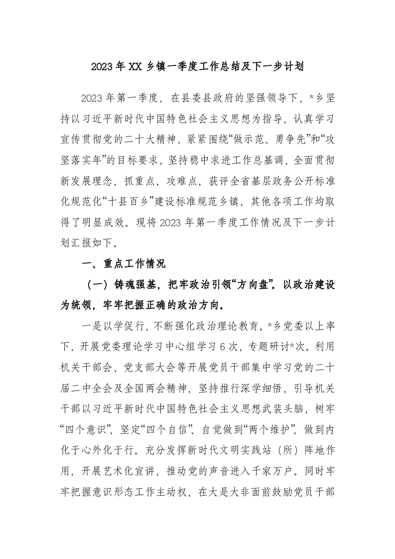 2023年乡镇一季度工作总结及下一步计划