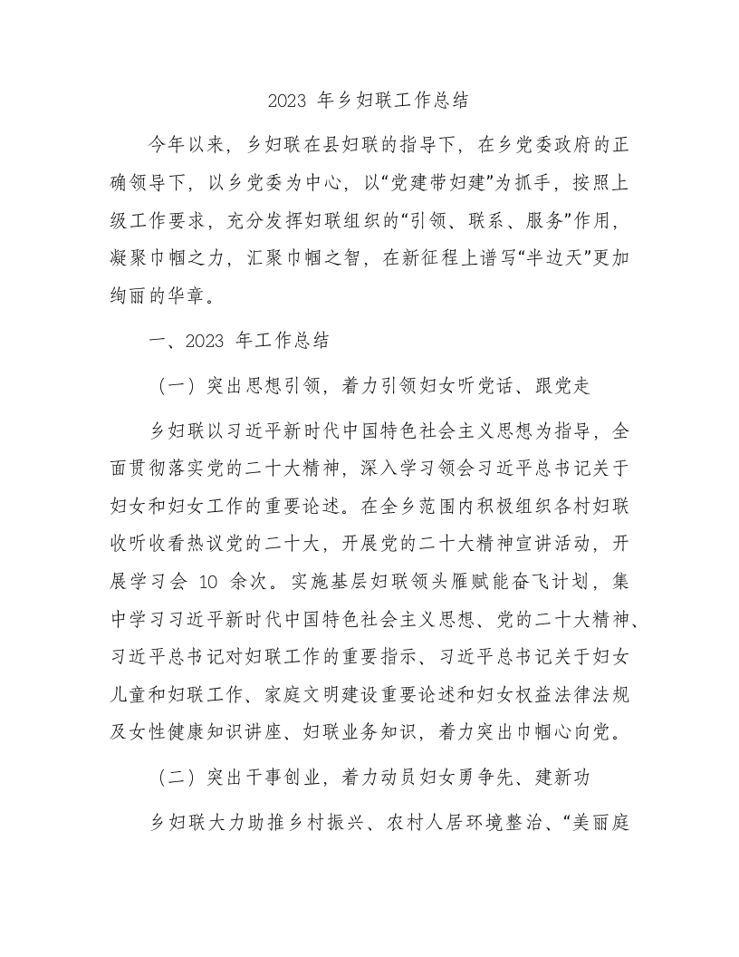 / 2023年乡镇妇联工作总结