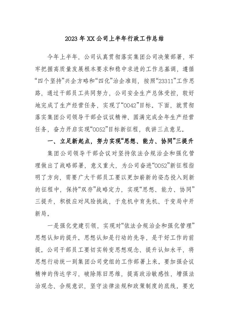 2023年公司上半年行政工作总结