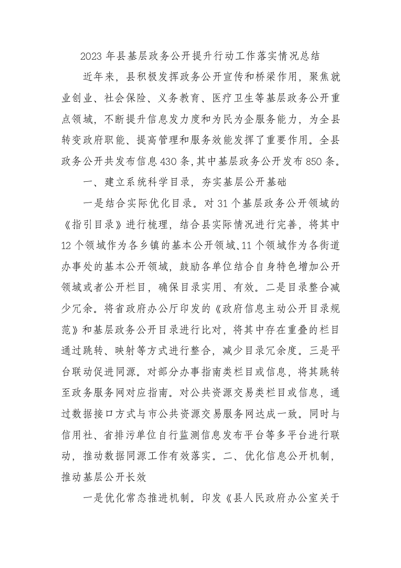 / 2023年县基层政务公开提升行动工作落实情况总结