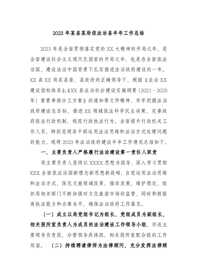 / 2023年县局依法治县半年工作总结