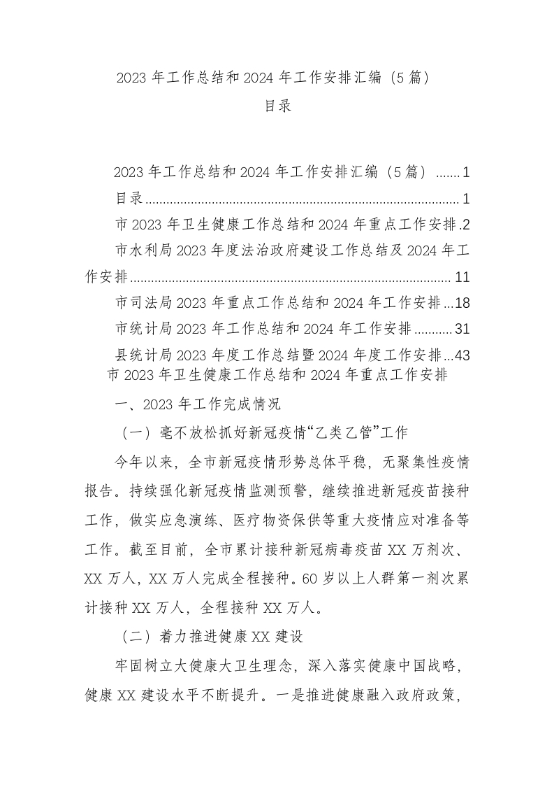 / 2023年工作总结和2024年工作安排汇编(5篇)