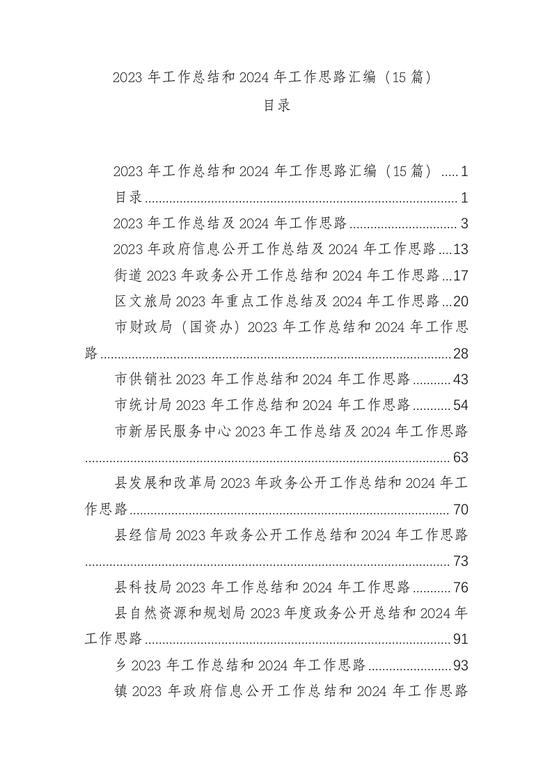 / 2023年工作总结和2024年工作思路汇编(15篇)