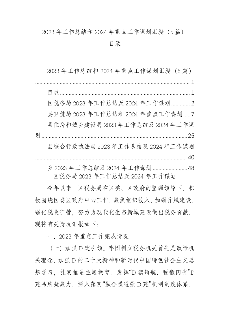 2023年工作总结和2024年重点工作谋划汇编(5篇)