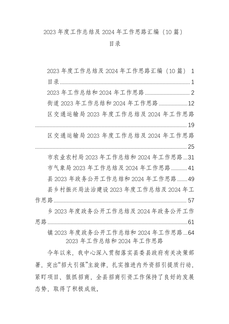 2023年度工作总结及2024年工作思路汇编(10篇)