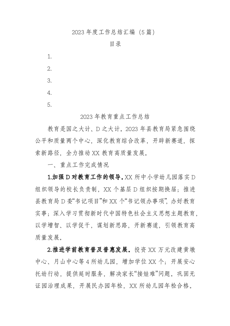 2023年度工作总结汇编(5篇)