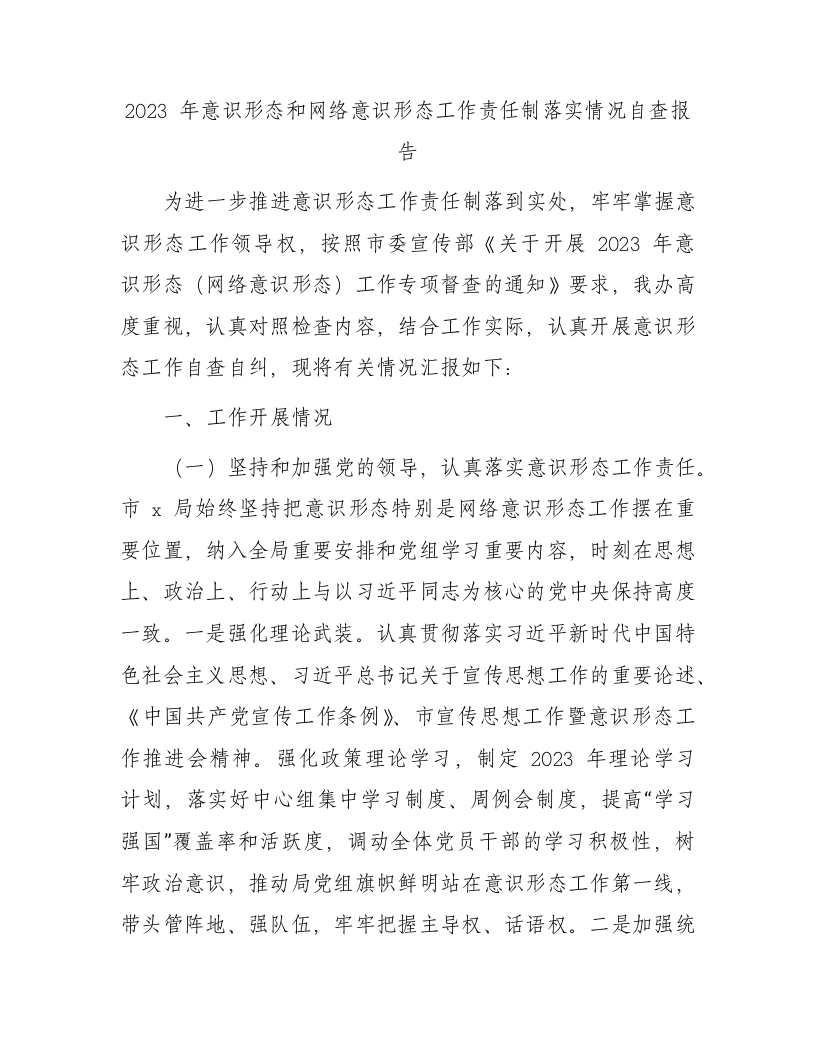 2023年意识形态和网络意识形态工作责任制落实情况自查报告(2400字总结)