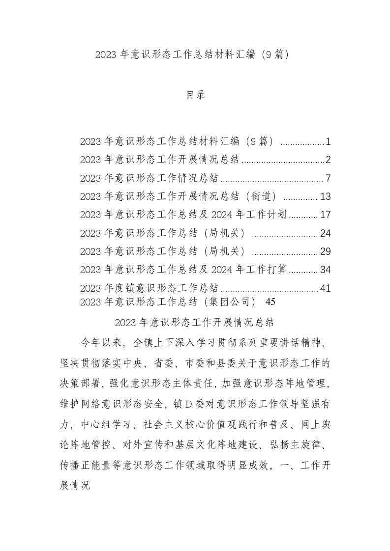/ 2023年意识形态工作总结材料汇编(9篇)