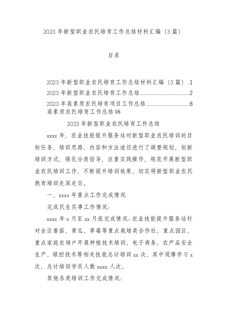 2023年新型职业农民培育工作总结材料汇编(3篇)
