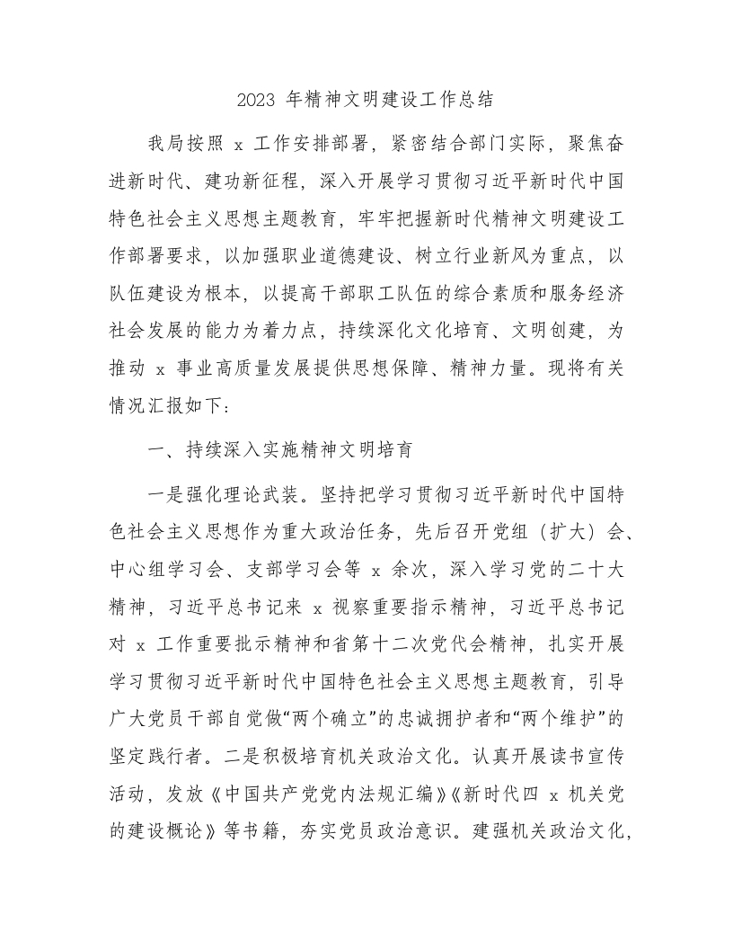 / 2023年精神文明建设工作总结