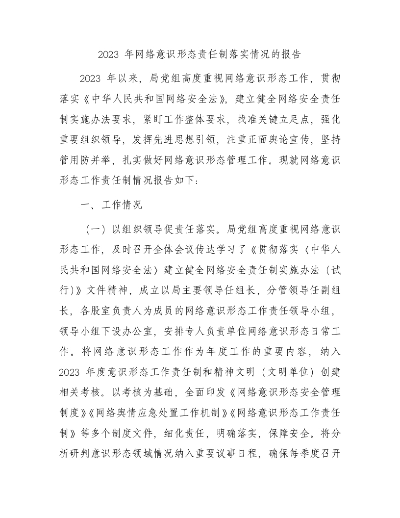 2023年网络意识形态责任制落实情况总结报告1900字