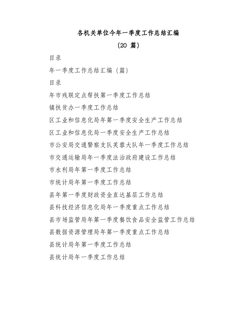2023年(20篇)各机关单位今年一季度工作总结汇编