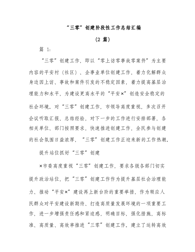 / 2023年(2篇)“三零”创建阶段性工作总结汇编