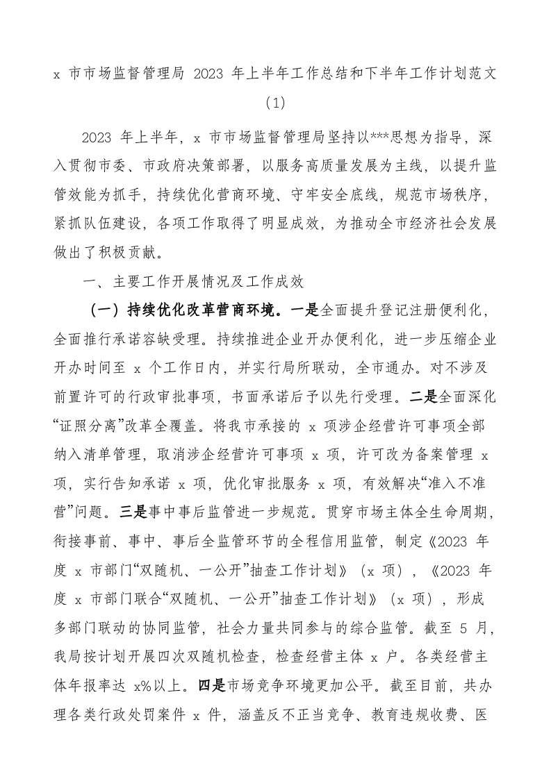 / 3篇2023年上半年工作总结和下半年计划市场监督管理局街道应急管理搬迁安置办公室