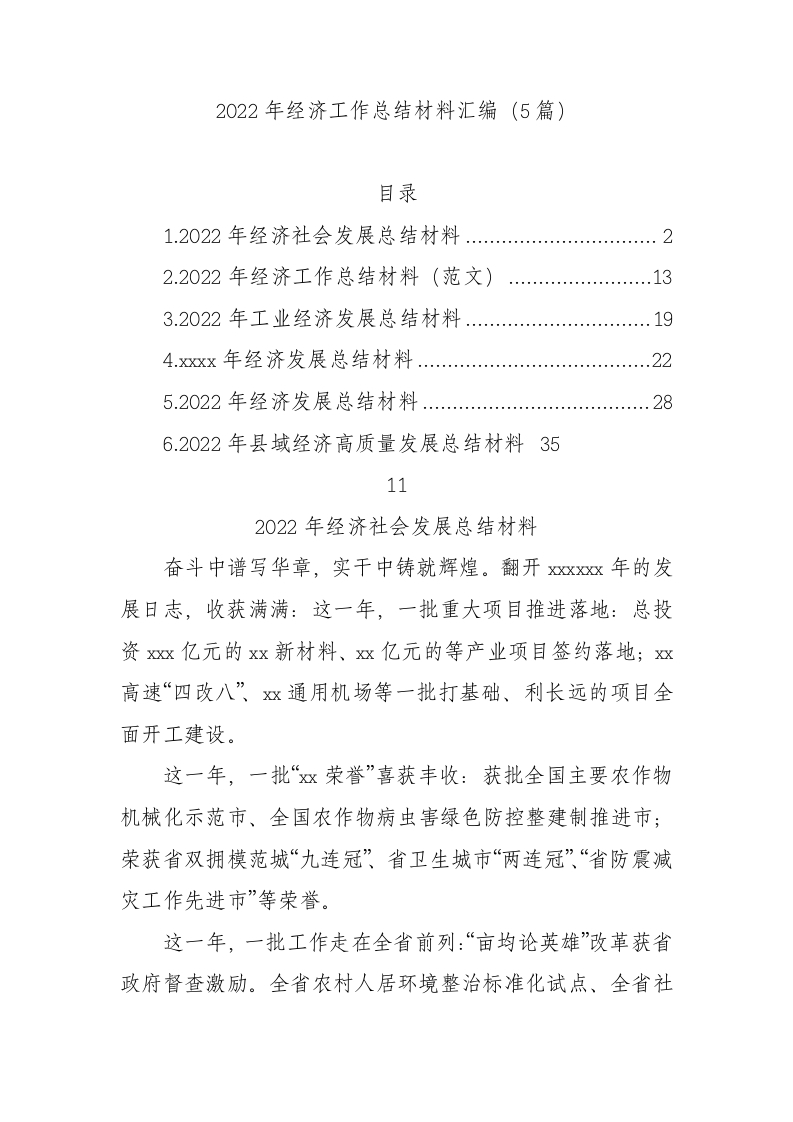 / 5篇2022年经济工作总结材料汇编