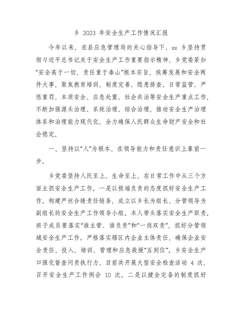 / 乡镇2023年安全生产工作总结汇报