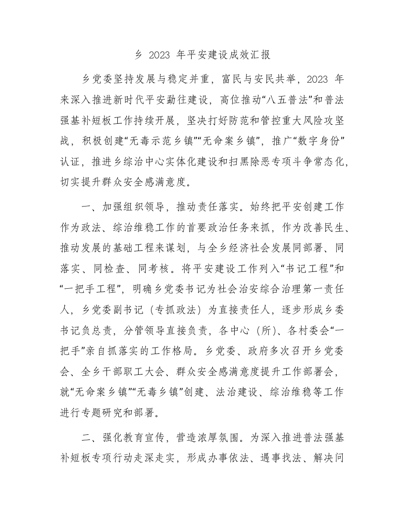 / 乡镇2023年平安建设成效汇报(3300字总结)