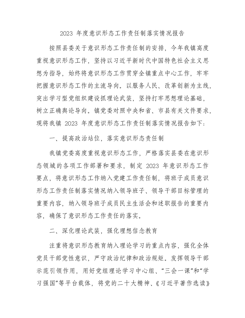 / 乡镇2023年度意识形态工作责任制落实情况总结报告1700字