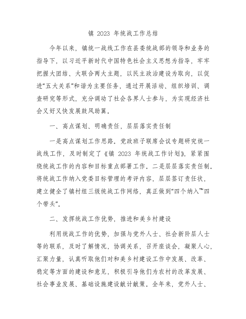 / 乡镇2023年统战工作总结