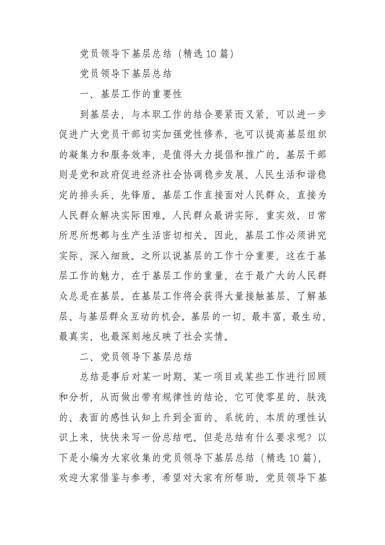 / 党员领导下基层总结(10篇)