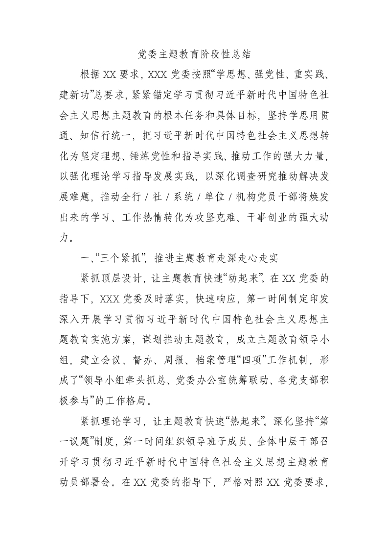 / 党委主题教育阶段性总结