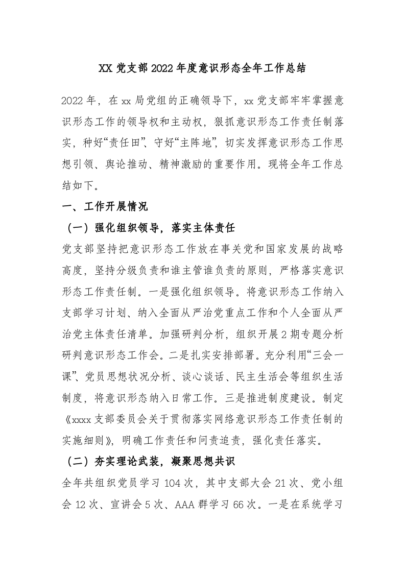 党支部2022年度意识形态全年工作总结