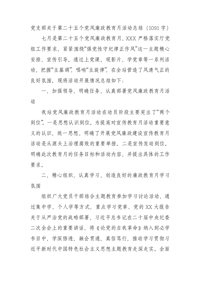 / 党支部关于第二十五个党风廉政教育月活动总结