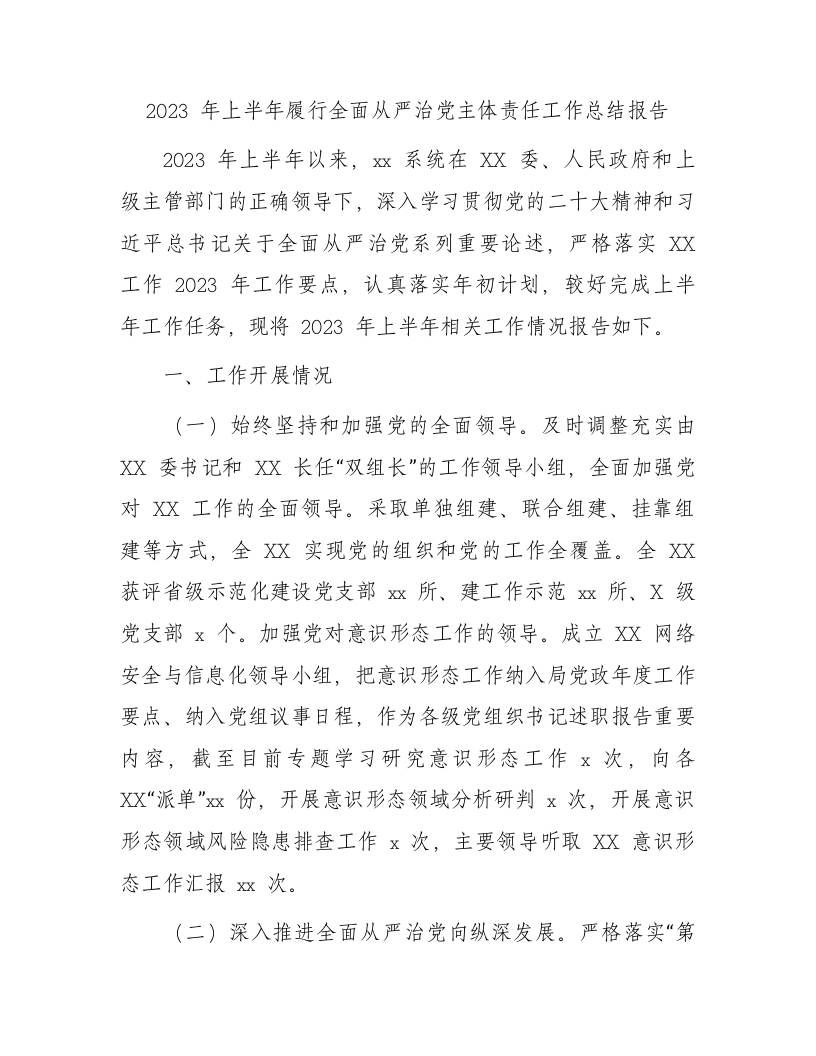 / 党组2023年上半年履行全面从严治党主体责任工作总结报告1800字