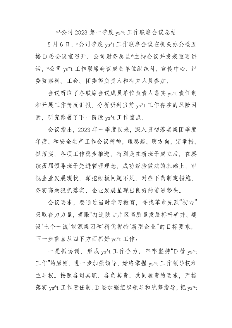 公司2023第一季度意识形态工作联席会议总结