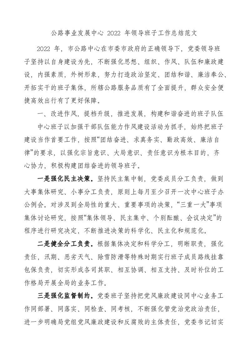 / 公路事业发展中心2022年领导班子工作总结范文