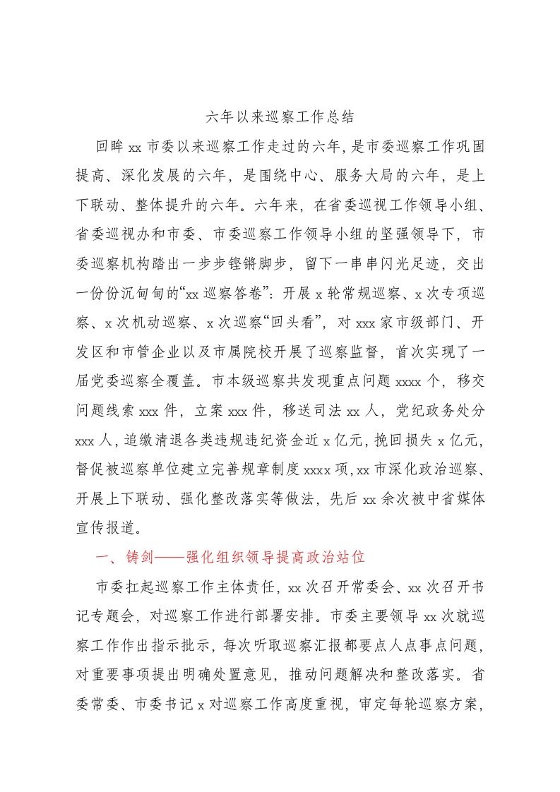 / 六年以来巡察工作总结
