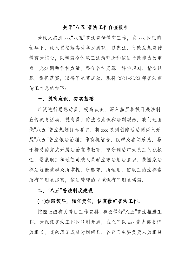 / 关于“八五”普法工作自查报告(总结)