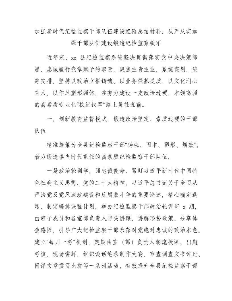 / 加强新时代纪检监察干部队伍建设经验总结2300字