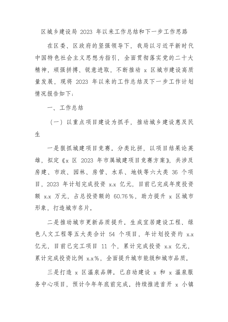 / 区城建系统2023年以来工作总结和下一步工作思路