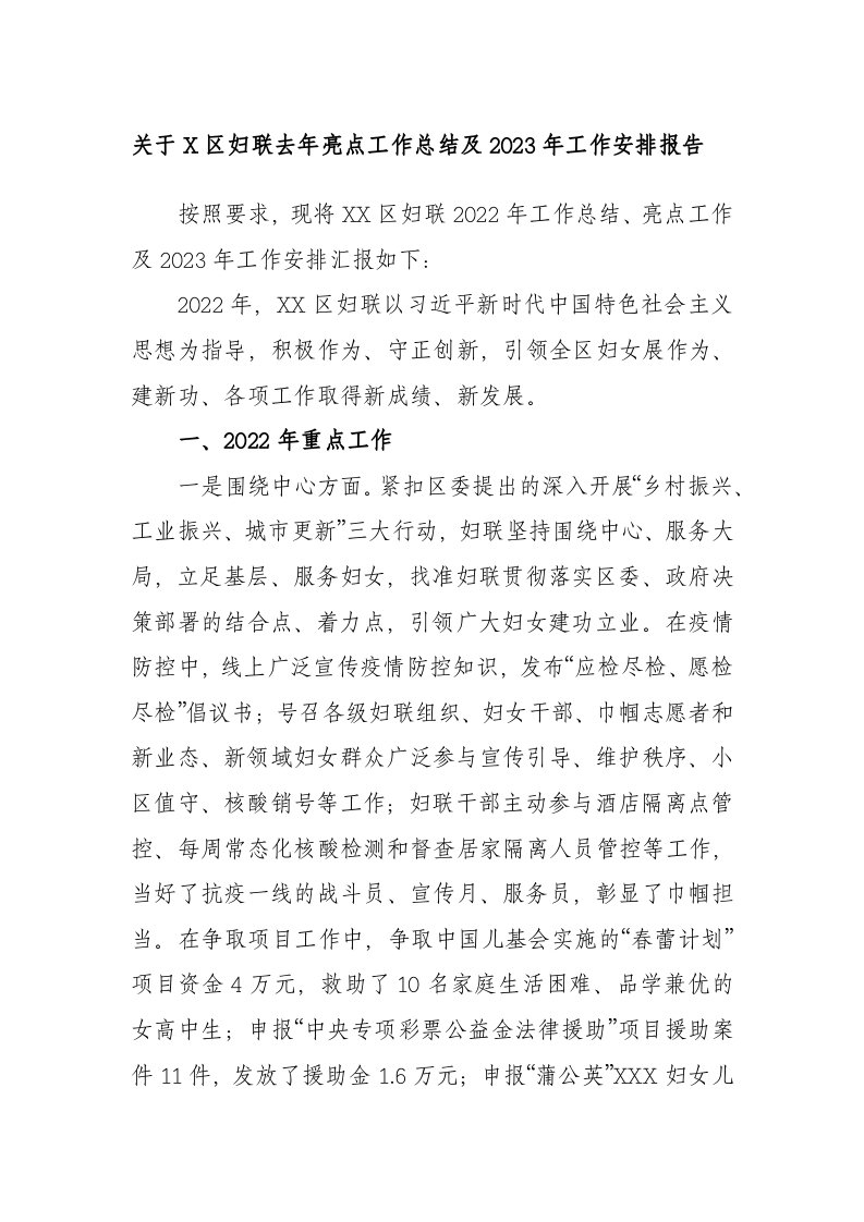 / 区妇联去年亮点工作总结及2023年工作安排报告
