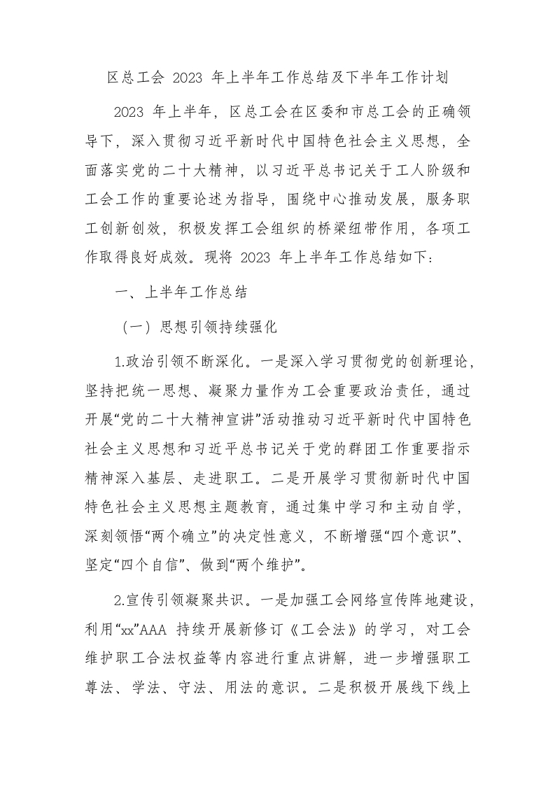 / 区总工会2023年上半年工作总结