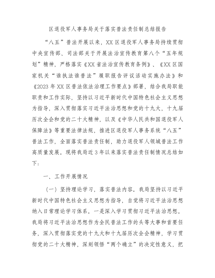 / 区退役军人事务局关于落实普法责任制总结报告